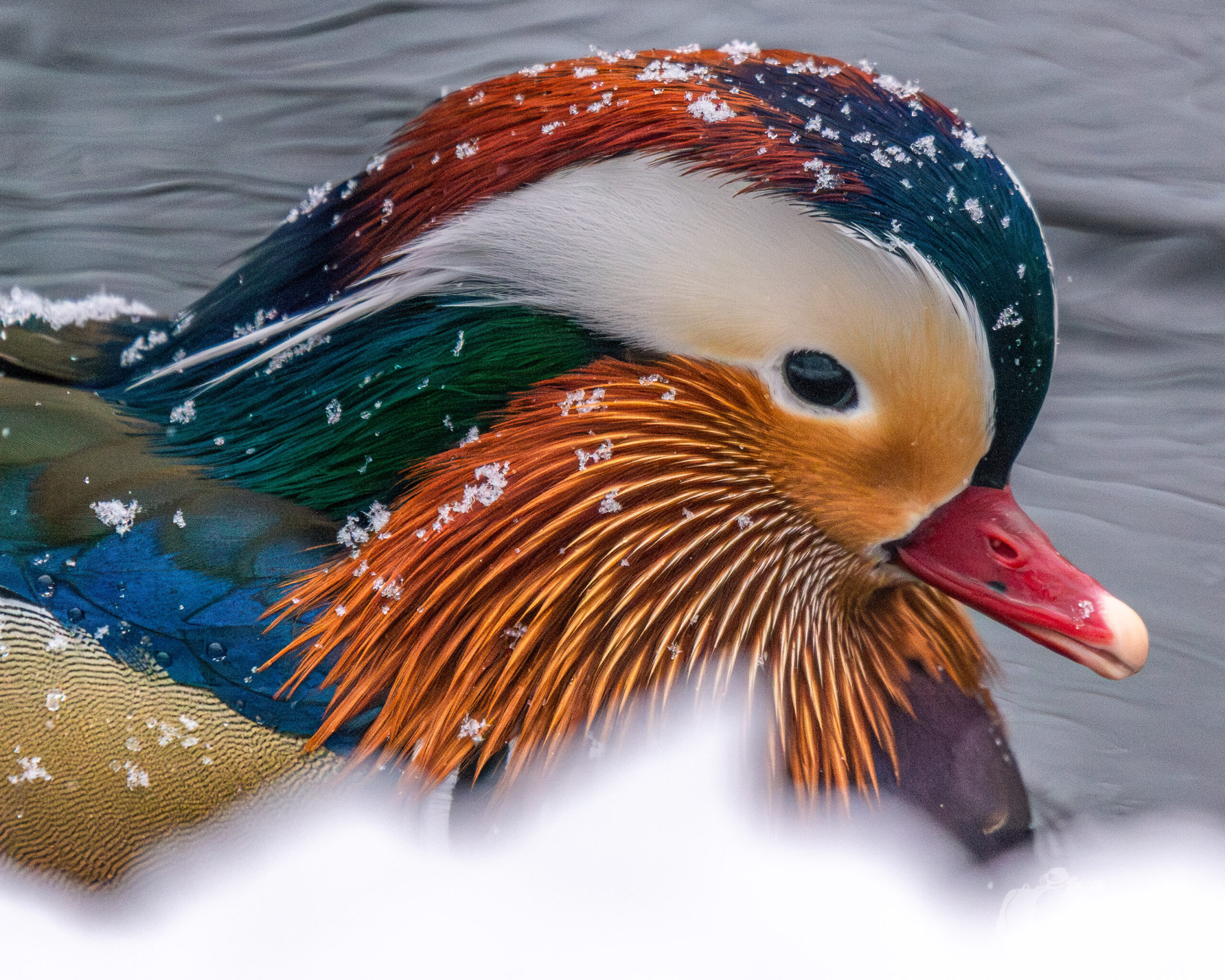 Tak jak przypuszczałem. Tym razem również “modele” mnie nie zawiedli. Z szeregów awifauny, pod obiektyw mojego leciwego już Nikona, zawitały: bogatki, modraszki, kawki, wrony i gawrony. Z ptaków wodnych: mewy śmieszki i mewy siwe, kaczki krzyżówki oraz kolorowi samce i szare samice mandarynek. Pod koniec spaceru, na mini sesję zdecydował się kowalik. Widząc to dzięcioł średni też poczuł parcie na szkło, ale plany pokrzyżowała mu pogoda, ponieważ pogorszyły się warunki oświetleniowe i zdjęcia wyszły bardzo przeciętnie.